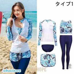 フィットネス水着 レディース 4点セット 30代 40代 50代 60代 セパレート 体型カバー 長袖ラッシュガード