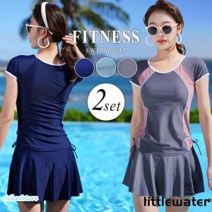 フィットネス水着 レディース セパレート かわいい ママ水着 オトナ女子 露出控えめ 半袖 スポーツウェア ショートパンツ 2点上下セット ラッシュガード