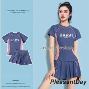 水着 レディース 体型カバー 半袖 長袖 2点セット ショートパンツ フィットネス スポーツ セパレート ビーチ プール ジム運動用 韓国 水着