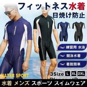 フィットネス水着 水着 メンズ ラッシュガード 日焼け防止 スポーツ スイムウェア 練習用 競泳水着 水泳 オールインワン かっこいい 着脱簡単