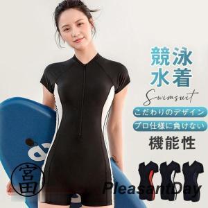 水着レディース 体型カバー フィットネス水着 半袖 めくれ防止 ジム プール スイムウェア レディース フィットネス 競泳水着