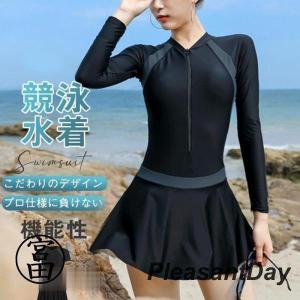 フィットネス水着 レディース オールインワン 競泳水着 温泉 スイムウェア スカート付き 水着 女性 長袖 体型カバー 練習用 短パン ファスナー