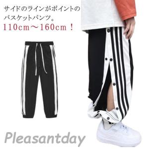 裾ボタン ジュニア スナップボタン 男の子 キッズ バスケットパンツ 女の子 サイドボタン バスケパンツ サイドライン 秋 夏 春 冬 長ズボン ロン