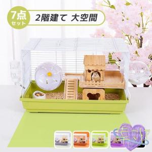 ハムスター ケージ 7点セット 2階建て 大きめ 小動物 ケージ ハウス ハシゴ 給水ボトル まわし車 食器 回し車 自動給水器 通気性抜群 脱出にくい 組立簡単