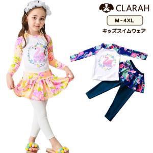ラッシュガード キッズ 上下セット 女の子 水着 フラミンゴ 花柄 長袖 長ズボン 海水浴 プール ネコポス送料無料