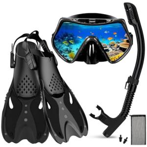 シュノーケリング シュノーケルセット 2025夏新登場シュノーケリングセット 3点セット 180℃視野 シュノーケルマスク ドライスノーケル フ