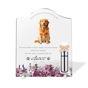 【ペットメモリアル】ペット位牌 犬 猫 名入れ おしゃれアクリルプレート オーダーメイド デザイナー仕上げ 日本製 メモリアルカプセル (コスモス, クリア)