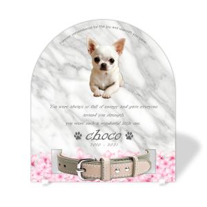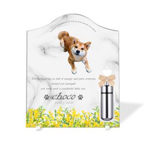 【ペットメモリアル】ペット位牌 犬 猫 名入れ おしゃれアクリルプレート オーダーメイド 日本製 メモリアルカプセル付 (ミモザ, 大理石調ホワイト)