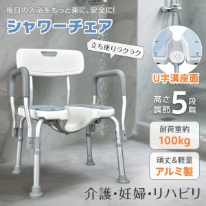 シャワーチェア 介護 折りたたみ 脚ゴム U型座面 背もたれ ひじ掛け 風呂椅子 介護椅子 入浴 高さ調節 高齢者 入浴補助 バスチェア 風呂イス クッション マット