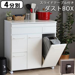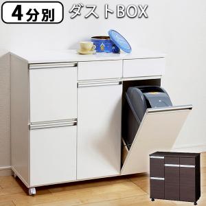 ゴミ箱 収納 ほぼ 完成品 4分別 キッチンカウンター おしゃれ ゴミ箱ラック ダストボックス 2個 キャスター付き 鏡面 白 引出し 背面化粧 敬老の日