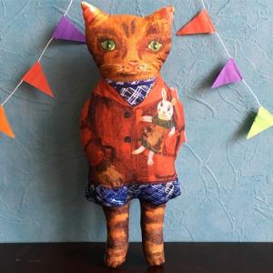 ナタリー・レテ ドール・クッション チャコール・ラッキー・キャット 黒招き猫のクッション人形