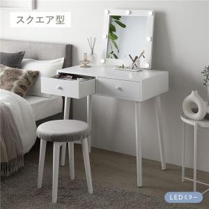 ドレッサー ホワイト LED照明 スツール付き 調光ミラー 化粧台 鏡台 ドレッサーテーブル メイク台 コスメ収納 送料無料