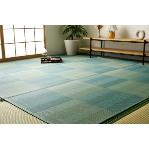 イケヒコ い草 ラグ カーペット ルネ レイクブルー 約261×352cm 江戸間6畳 花ござ 格子柄 ナチュラル シンプル 和室 上敷き カバー #4350006
