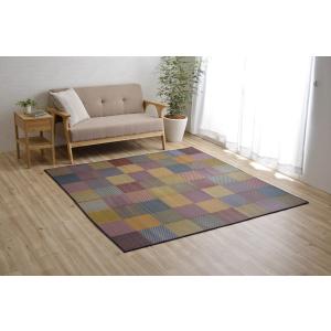 イケヒコ 国産 い草 ラグ カーペット DXカラフルブロック 約140×200? ブルー 裏:不織布 #1709200