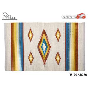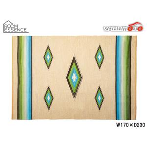 東谷 ラグ グリーン W170×D230 TTR-166B 敷物 おしゃれ ネイティブ柄 オルテガ柄 カラフル コットン メーカー直送 送料無料