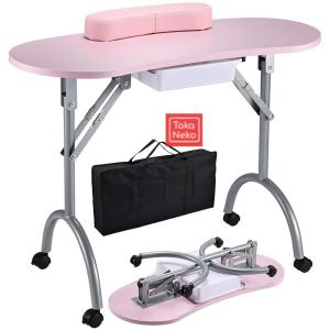 マニキュアテーブル ネイルサロンデスク ネイルメイク作業台 ポータブル折りたたみマニキュアテーブル ハンドレスト付、360°回転ホイールと収納バッグ付き お手