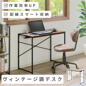 1/26 8:59まで最大10%OFF! デスク 幅90 学習机 ヴィンテージ風 スチール×木 棚付き キャスター付 ビンテージ調 大人用