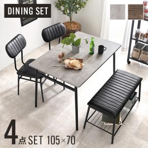 ダイニングテーブルセット 4人用 約 幅105 ヴィンテージ チェア ベンチ チェア 合皮 スチール カフェ 食卓 角型 コンパクト おしゃれ 敬老の日
