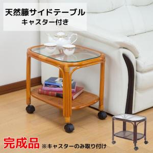 ファミリー・ライフ 天然籐サイドテーブル キャスター付き [カラー:ナチュラル/ダークブラウン] | ラタン ガラス天板 ソファサイド
