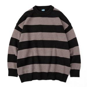 【KAVU/カブー】メンズ ボーダーニット セーター クルーネック シンプル カジュアル コットン混 ジャパンフィット Black / Grey