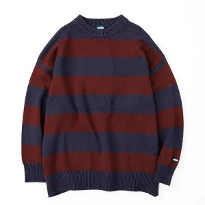 【KAVU/カブー】メンズ ボーダーニット セーター クルーネック シンプル カジュアル コットン混 ジャパンフィット Navy / Burgundy