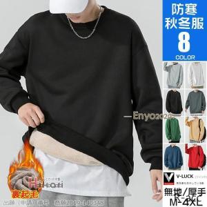 裏起毛トレーナー メンズ スウェット 無地 フリース 長袖 クルーネック ボア あったか ユニセックス トップス 春 秋 冬