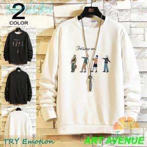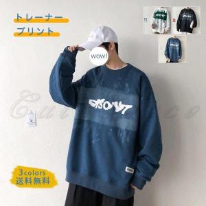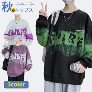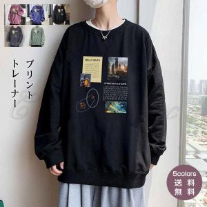 トレーナー メンズ 長袖 プリント ゆったり トップス 春秋 丸首 男性用 カジュアル プルオーバー かっこいい 紳士 スポーツ きれいめ おしゃれ