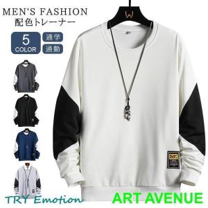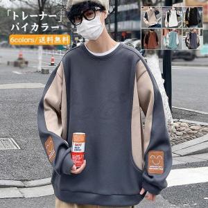 トレーナー メンズ 長袖 バイカラー シンプル トップス 春秋 丸首 男性用 薄手 カジュアル プルオーバー かっこいい 紳士 きれいめ おしゃれ