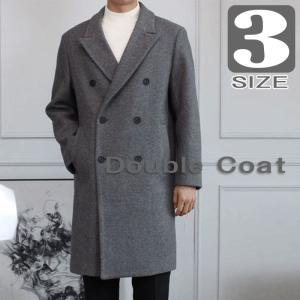 韓国ファッション ダブルコート メンズ ロング コート 無地 ウール混紡 ツイード オーバーサイズ ルーズフィット グレー 高級感 重厚感 送料無料