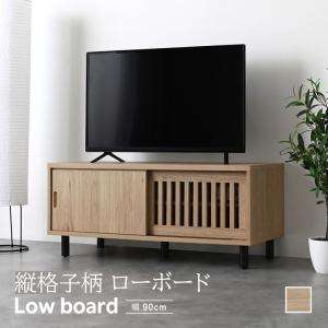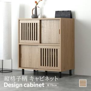 縦格子 デザイン シェルフ 幅75cm リビング キッチン キャビネット 脚付 ラック 引き戸 2枚 扉 棚 収納 コード穴付 木製 ディスプレイ インテリア 家具 送料無料