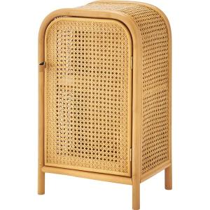 キャビネット 約幅36×奥行26×高さ60cm ナチュラル 脚付き 扉付き 天然木 ミンディ ラタン 本革 リビング収納 インテリア家具