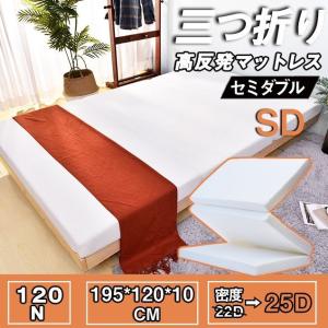 マットレス セミダブル 高反発マットレス 極厚10cm 三つ折り 折りたたみマットレス 硬め120N 敷布団 腰痛対応 洗えるカバー 高反発