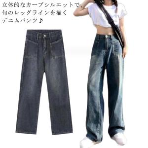 デニム パンツ レディース デニムパンツ ワイドパンツ ジーンズ ジーパン ズボン ボトムス ゆったり 大きいサイズ 小さいサイズ ハイウエスト 体型