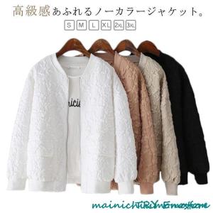 春 アウター レディース ブルゾン ノーカラー ジャケット ショート ノーカラージャケット ライトアウター 秋 カジュアル 長袖 羽織り 春服 おしゃ