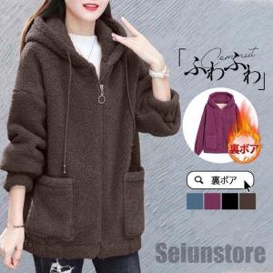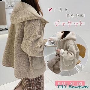 フリースジャケット レディース ジャケット ジャンパー ブルゾン パーカー 裏ボア 裏起毛 フード付き モコモコ 厚手 ボアジャケット フェイクムートン 秋冬