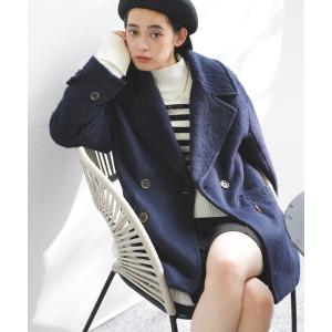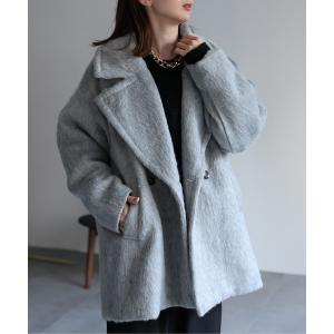 ピーコート pコート 2WAYアレンジカラーミドル丈メランジシャギーコートジャケット(Pコート) レディース