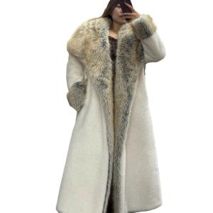 ロングファージャケット フェイクファー 毛皮コート レディース 防寒着 ファーブルゾン ビッグシルエット 秋冬服 マキシ丈 エレガント