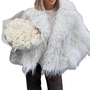 毛皮コート レディース フェイクファージャケット 防寒着 折り襟 毛足長い もこもこ エコファー ショート丈アウター フェミニン ふわふわ