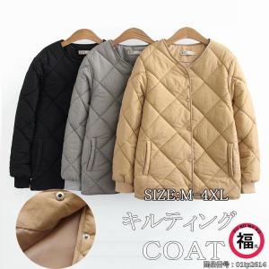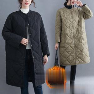 キルティングコート ロングコート レディース アウター 膝丈 防寒 ダウン 中綿 秋 冬アウター 長袖 冬服 キルティングジャケット ノーカラーコート 暖かい
