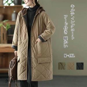 キルティングコート レディース 40代 フード付き 中綿コート ロングコート ジャケット ふんわり 大きいサイズ 大人 ゆったり アウター 通勤 上品 秋冬