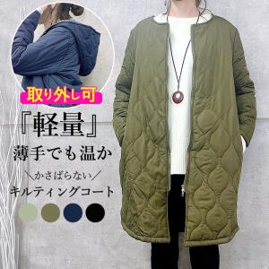 コート キルティング アウター レディース ジャケット ノーカラー 中綿 フード 取り外し 薄手 秋 冬(送料無料)^jk190^爆買