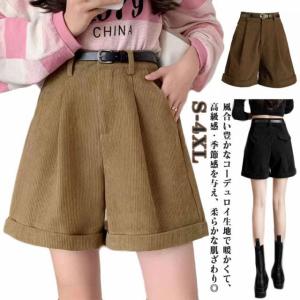 ハーフパンツ レディース キュロット ショート ハイウエスト Aライン ハーフ丈 ショート丈 五分丈 暖かい ストレッチ きれいめ カジュアル 厚手 50代 秋 冬 秋冬