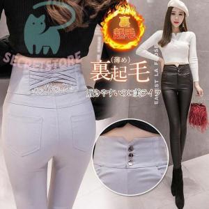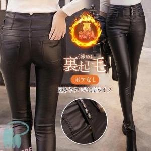 レザーパンツ レディース フェイクレザー ロングパンツ ハイウェスト カジュアル 細身 スキニー 美脚 脚長 美尻 裏起毛 2タイプ 秋冬 大きいサイズ