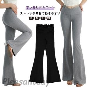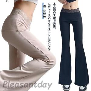 レディース フレアパンツ ストレッチ スリムパンツ ハイウエス 春 秋 パッチワークレース ボトムス ブーツカットパンツ ロングパンツ 美脚ライン 体