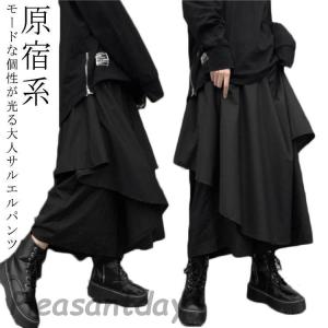 袴パンツ アシメトリー スカート風 ワイドパンツ ダンスパンツ クロップド丈 ストライプ柄 メンズ レディース 秋 冬 春 ユニセックス ゆったり ダ