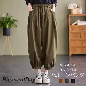 バルーンパンツ レディース 夏 パンツ 夏用 ボトムス コクーンパンツ バルーン 9分丈 イージーパンツ ウエストゴム ポケットづき サルエルパンツ 涼しい