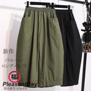 バルーンパン レディース ロング丈 春 秋 ビッグシルエット パンツ スカンツ ワイドパンツ お洒落 原宿系 サルエルパンツ ボトムス スカートパンツ