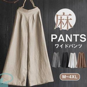 ワイドパンツ サルエルパンツ 綿麻ワイドパンツ リネン風 ボトムス 麻綿パンツ ガウチョパンツ レディース 体型カバー ゆったり 大きいサイズ