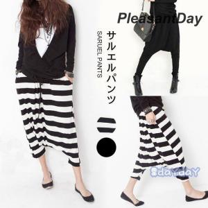 サルエルパンツ レディース ジョッパーズパンツ 無地 ボーダー おしゃれ シンプル 動きやすい ゆったり 7分丈 カジュアル ボトムス 夏新作