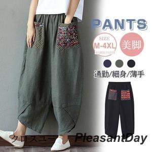 サルエルパンツ ズボン レディース 部屋着 ルームウェア アジアンファッション 綿麻 山ガール アウトドア 9分丈 アラジンパンツ 無地 春 夏 秋